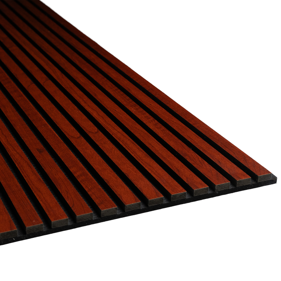 Each panel features veneered wood slats fixed to a specially developed high-density acoustic felt. This combination provides an outstanding Noise Reduction Coefficient (NRC), absorbing sound waves and significantly reducing reverberation. Making this product ideal for media rooms, busy offices, or open-plan living.